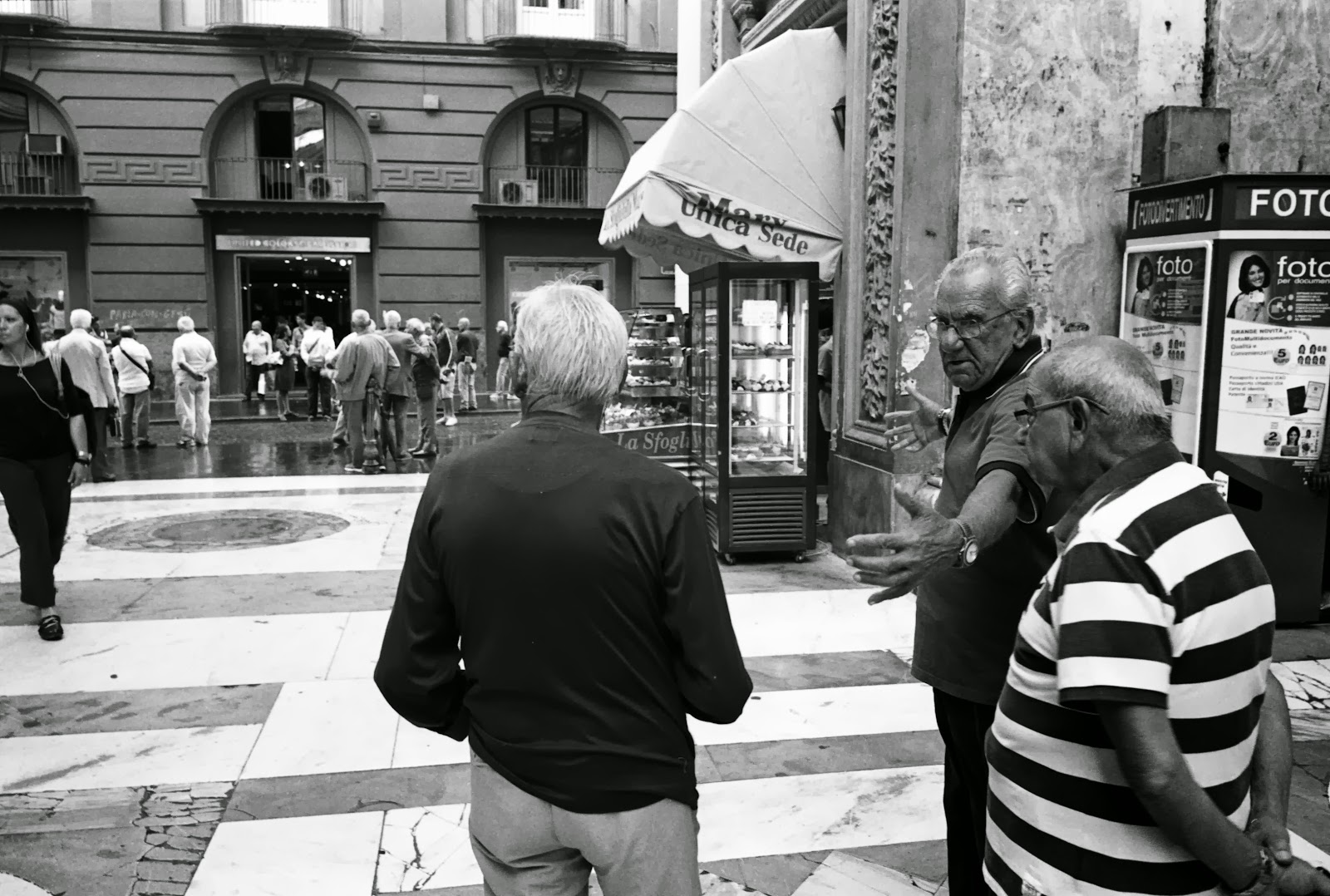 Im Rahmen einer Mittelmeer-Kreuzfahrt konnte ich bei den Landgängen wundervolle Momente einfangen. Diesseits und jenseits der Touristenströme boten sich reichliche Gelegenheiten, obwohl die Zeitfenster relativ kurz waren. Nach langem Hin und Her bin ich meinem ursprünglichen Impuls treu geblieben und habe dazu meine Contax G1 mit den Brennweiten 21, 28, 45 und 90mm verwendet und überwiegend in Schwarz-Weiß fotografiert.